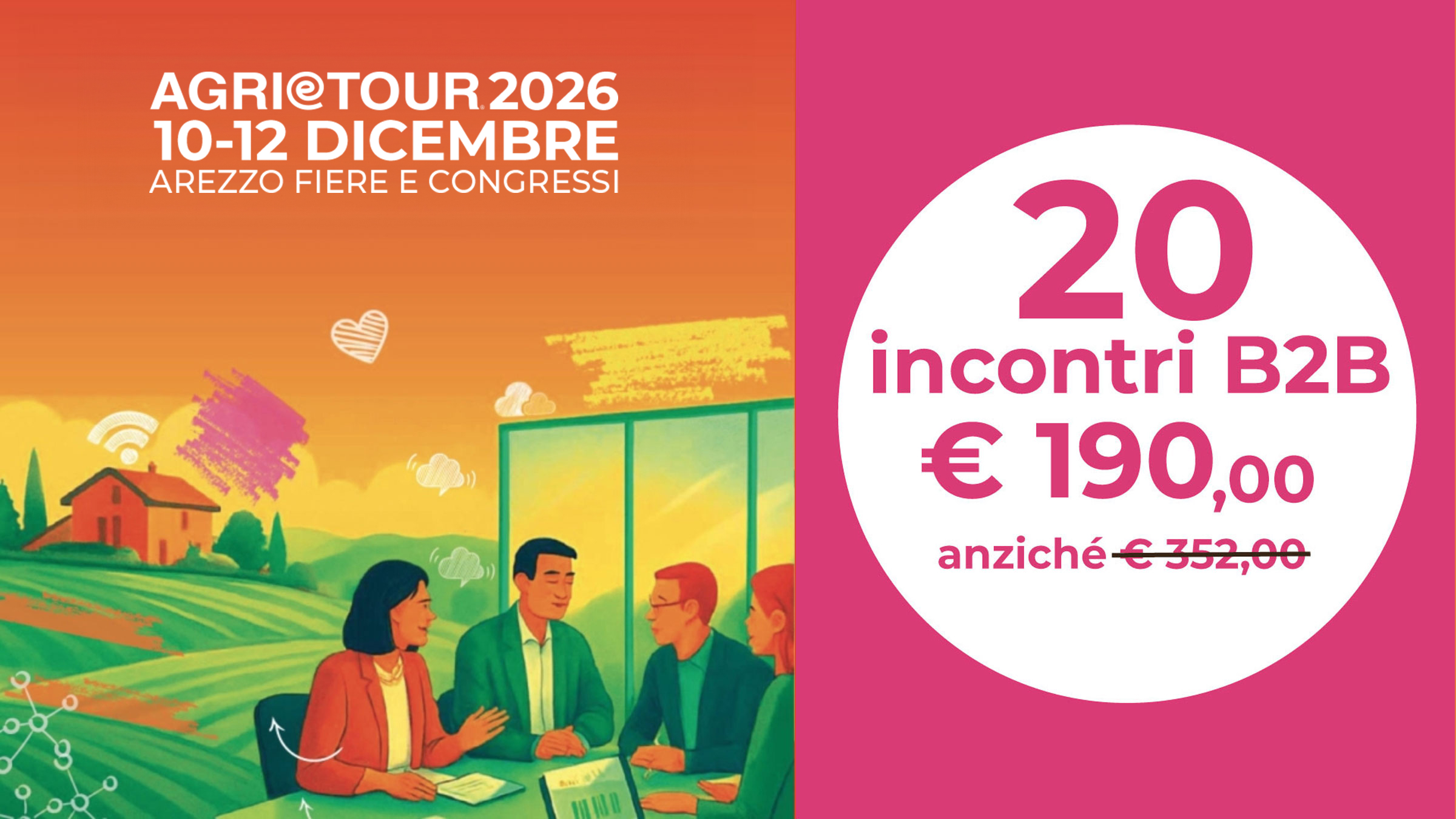 Nell’experience B2B Workshop di AGRIeTOUR farai incontri di 15 minuti con i Buyer: Tour Operator, agenzie di viaggio e CRAL.