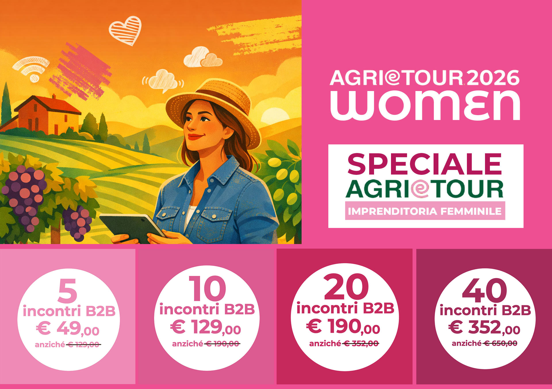 AGRIeTOUR 2026 riserva alle aziende agrituristiche guidate da donne o con una leadership femminile nella gestione, un’offerta speciale per l’iscrizione all’Experience B2B Workshop.